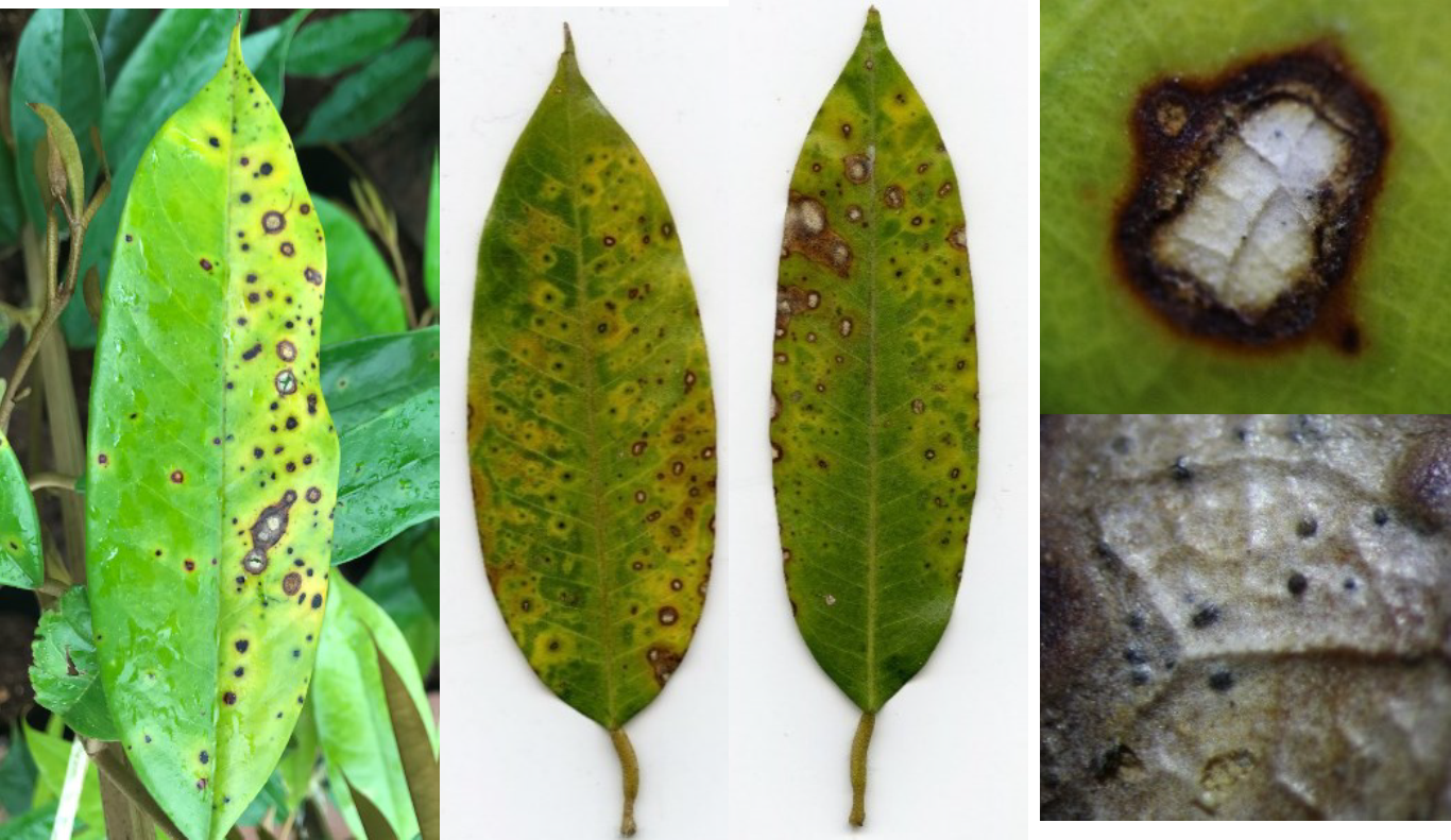ควำมสำคัญ โรคใบจุดเป็นโรคที่พบได้โดยทั่วไปไม่ก่อความเสียหายต่อทุเรียนต้นโตและกาลังให้ผลผลิต แต่หากมีการสะสมของโรคจะส่งผลต่อผลผลิตทุเรียนอาจทาให้เกิดโรคผลเน่าหลังการเก็บเกี่ยวได้ โรคใบจุดมักพบส่งผลกระทบต่อทุเรียนต้นเล็กในแปลงเพาะชามากกว่าทุเรียนต้นโต