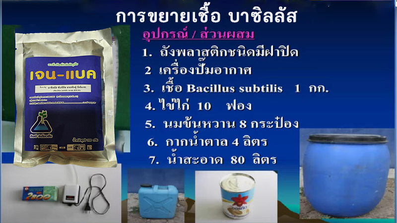 วิธีขยายเชื้อสด เจน-แบค สามารถขยายเป็นเชื้อสดได้ อัตรา 100 กรัมผสมน้ำต้มสุกหรือน้ำสะอาด 1 ลิตร ทิ้งไว้ 24 ชั่วโมง (เขย่าหรือให้อากาศ) ผสมน้ำฉีดพ่นได้ 50-100 ลิตร ควรฉีดพ่น เจน-แบค ในเวลาตอนเย็นในสภาพแปลงที่มีความชื้น 60-70 เปอร์เซ็นต์ การขยายเชื้อ เจน-เเบค เเบบเลี้ยงเชื้อ: |