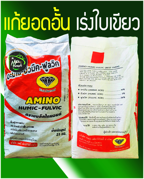 แบล็คไดมอนด์ ปุ๋ยอินทรีย์อะมิโน-ฮิวมิค-ฟูลวิก กระตุ้นราก แตกใบอ่อนปรับฟื้นฟูดินบำรุงต้นพืช มีสารอาหาร NPKอินทรีย์12-0-3 เเละสารเร่งไบโอสติมมูเเลนท์ "อะมิโน16% ฮิวมิก3% ฟลูวิก26%" กระตุ้นการแตกราก ฟื้นฟูต้นโทรม ปรับสภาพเคมีเเละโครงสร้างดินแแก้ดินเสื่อม บำรุงต้นกระตุ้นการเจริญเติบโต หลังเก็บเกี่ยวเห็นผลไว แตกยอดใหม่ ใบเขียวสดเพิ่มการสังเคราะห์แสงให้ดีขึ้น ได้สารอาหารเพิ่มขึ้นทำให้มีการสะสมอาหารมากขึ้นพอสำหรับการออกดอกและการติดผลที่สมบูรณ์ เหมาะกับทุเรียนปลูกใหม่เเละหลังตัด, เเละเหมาะสำหรับนาข้าวที่ข้าวไม่ค่อยกินปุ๋ย